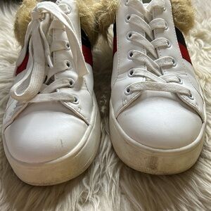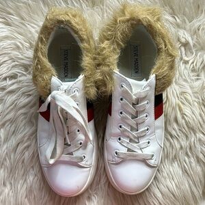 Steve madden white striped faux fur trim casual sneaker low top women’s 7.5