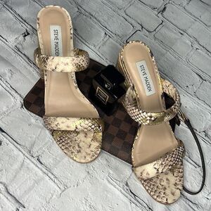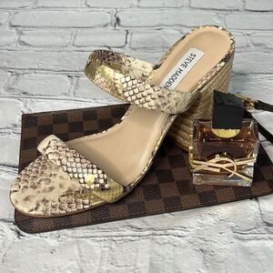 Steve madden cream and gold snake Espadrille large chunky heel excellent condition no damage features a heel height of 3 1/2 inches