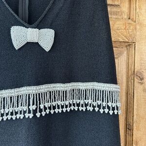 Steve Fabrikant Petite Black Beaded Bow Fringe Dress Sleeveless Tank Vintage NWT