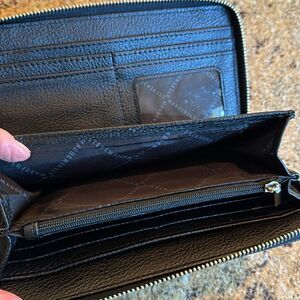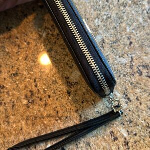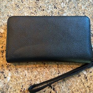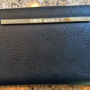 Steve Madden BZIPPY black pebbled faux leather bifold zipper wallet wristlet. Detachable strap. Numerous inner slots, compartments, pen holder, and zipper pocket. New, no tags. Nonsmoking home.