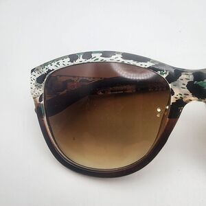 Steve Madden S5633 BROWN ANIMAL sunglasses with brown at the bottom and clear at the top with black and green leopard print.