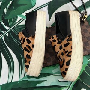 Steve Madden Brown and black animal print cowhide casual shoes featuring a 1 inch platform these are used condition does have a little bit of wear and tear on the piping but other than that they’re in pretty good condition