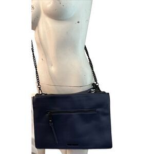 Steve Madden Large Navy Blue Cross Body Bag Exterior Zipper Pockets Compartments