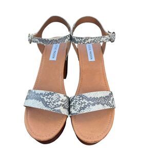 Steve Madden Luna Natural Snake Wooden Platform white Chunky Heel Sandals sz 10