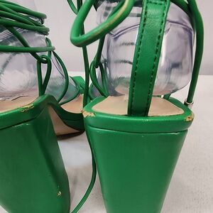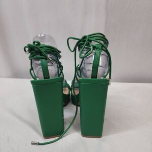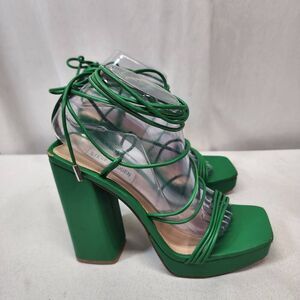 Steve Madden Manzie Green Lace Up Block Heel Squared Open Toe Heeled Sandals 9