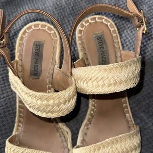 Steve Madden Raffia Espadrille Wedge Sandals Natural Tan Buckle Strap Size 9