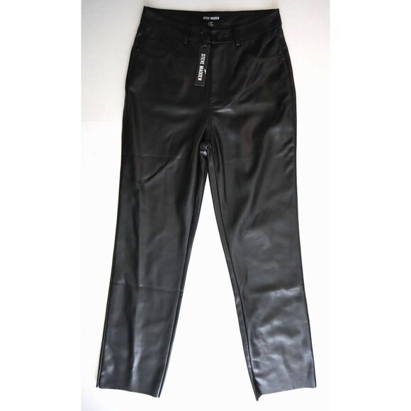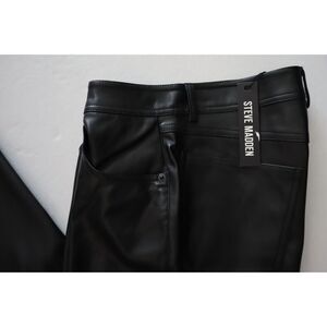 Steve Madden Women Sz 27 Black PU Leather Loren Mid-Rise Straight Leg Pants