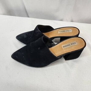 Steve Madden Women's 7 Black Suede Leather Slip-On Mule Flats Pointed Toe