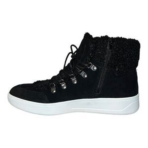 Steve Madden Womens Debora Mid-Top Sneakers Faux Sherpa Black 10M New