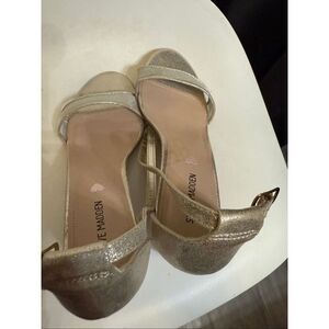 Steve Madden Women's Jcarrson Ankle Strap Block Heel Sandals Gold Mesh Size 7M