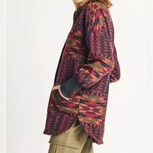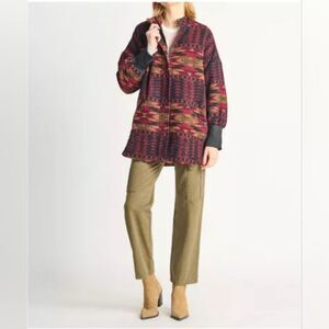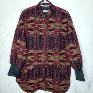 Steve Madden Women's Red Multicolor Aztec Print Cabin Fever Wool Blend Jacket M