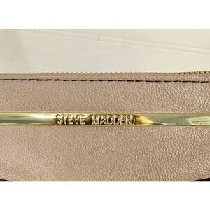 Stay stylish and organized on the go with Steve Madden's Women's Wrist Strap Clutch Bag. This versatile accessory is made for carrying all your essentials, from your phone, keys, and wallet to your favorite lipstick. Available in bold black color with striking tan and pink detailing, this clutch bag is the perfect way to add a pop of color to your outfit.