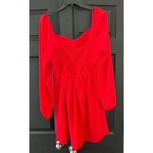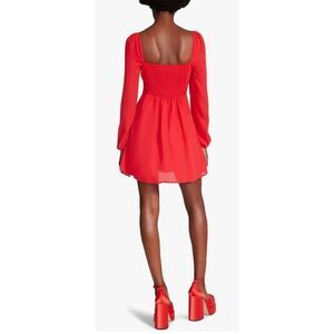 Take it easy. The Nicole dress is an effortless flowy mini dress with long sleeves and a bustier neckline.