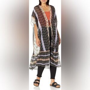 Steve Madden womens Ruffle Duster Printed Kimono With Tie Closure