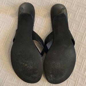 Thong leather straps, with overlay near toes for an elegant wrap design.