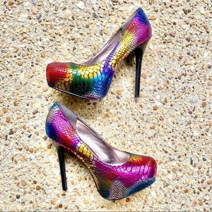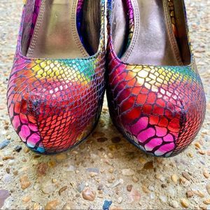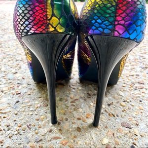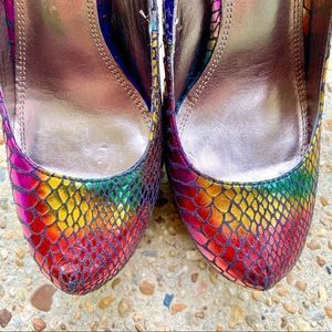 Steve Madden Bliss Rainbow multicolor snake embossed platform stiletto heels perfect for a night on the town!