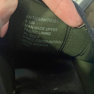 Steve Madden Kaiyo jogging sneakers black and camo. Size 9.5 ladies. There is a small scuff on the front toe and sticker residue where the pricing labels were see pictures. These are in great condition but the rubber has a weird smell to it not sure what it is. While beening worn I can’t smell it put I try to make sure anything I send out doesn’t stink from normal wear. Please let me know if you have any questions