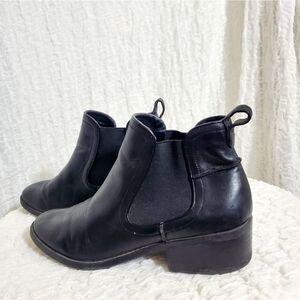 Black leather booties "Dicey" style. Closed toe pull on boots. Pre-owned in good condition. Please refer to pictures for best description and condition verification.