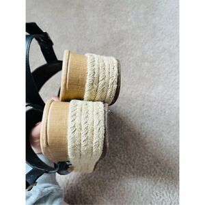 Steve Madden Espadrille Wedge Leather Black Sandals sz 10M