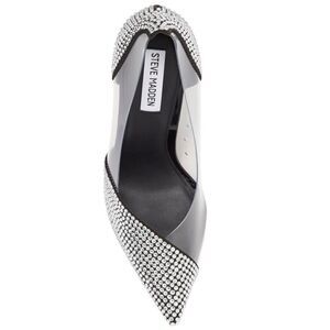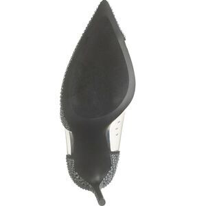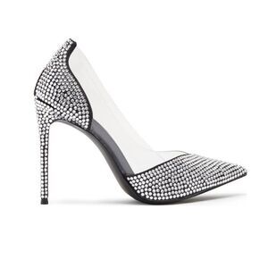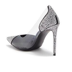 Rhinestones and clear panels bring edge to a pointed toe pump that definitely packs a punch.