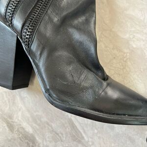 This Steve Madden Marando Ankle Boots Black is in Pre-Owned Condition! One small tear in the leather that has been professional repaired!