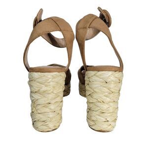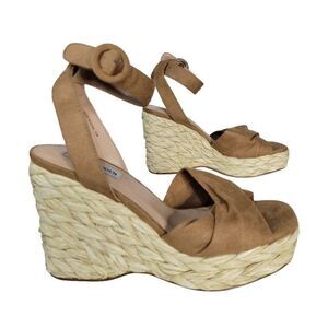 Gorgeous Steve Madden Poloma tan wedge sandals, pull-on with adjustable halo ankle strap, peep toe silhouette, woven covered platform and wedge heel. In great pre-owned consition, almost new.