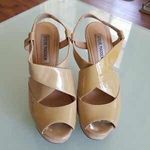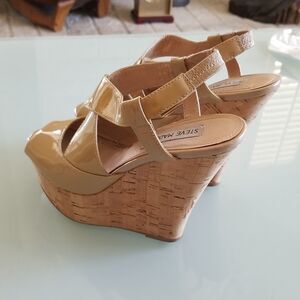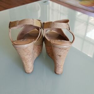 Adorable leather and cork 5" heels with elastic slip-on strap. Pretty taupe color. EUC. B45.622