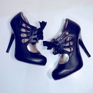 Steve Madden black leather string up 5”heels