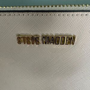 Beautiful Summer cross body bag by Steve Madden in a pale pink with gold hardware and floral scarf accent. Length 7” x Width 10” with an adjustable 20” strap.