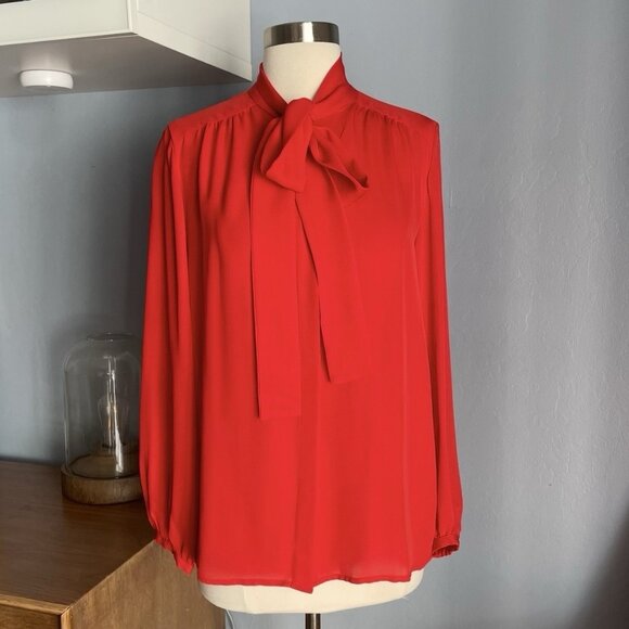 Steven Alan Silk Button Front Blouse Neck-Tie Bow Red