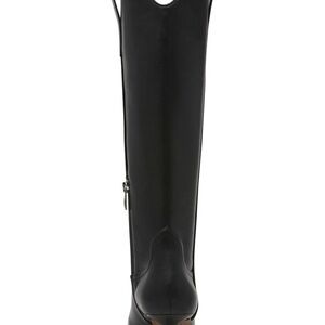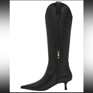 Sleek black heeled boots. Pointed toe design. Elegant and stylish.