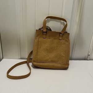 Steven By Steve Madden Embossed Floral Tan Leather Crossbody Bag Western Boho