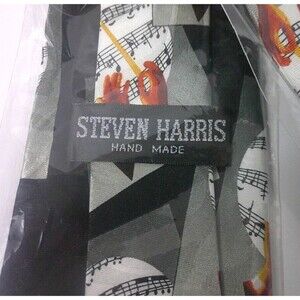 Steven Harris Mens Tie Hand Made Music Notes Conductor Black Silver 58" Long New