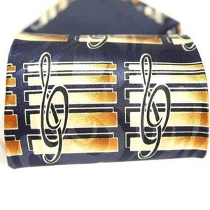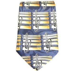 Steven Harris Tie Necktie Music Musical Notes Band Blue Tan Gold Hand Made