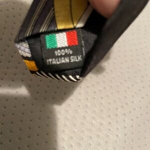 Elevate your style with this Steven Land 100% Italian Silk striking men's tie featuring a bold geometric pattern. The black and yellow design adds a modern touch to any outfit. Perfect for both formal and casual occasions.