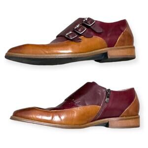Steven Land Triple Monk Strap Cognac Oxblood Pointed Toe Wingtip Shoes Men's 8.5