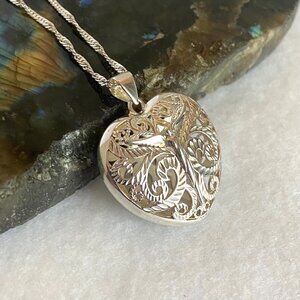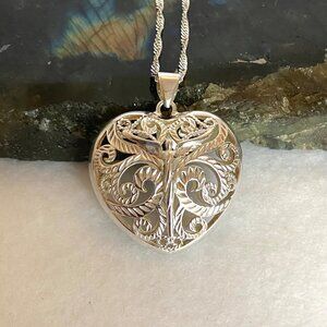 Sterling Silver 925 Signed Steven Lavaggi Filigree Pierced Puffy Heart Angel Of Reconciliation Pendant Necklace
