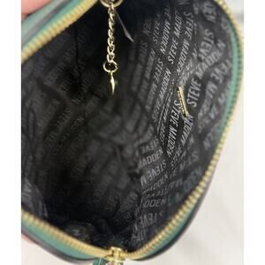 Elevate your outfit with this gorgeous Steve Madden crossbody bag in a rich emerald/teal green. Features a sleek mini silhouette, luxe gold-tone chain + adjustable strap, and a roomy zip-top interior with signature Steve Madden logo lining.