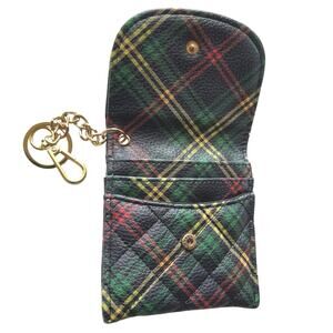 Steven Madden Bhayden Card Case Wallet, Plaid Green Mini Wallet, Keychain