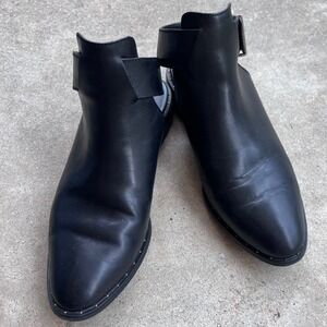 Keywords: Steven Madden, Mule Booties, Black Leather, Ankle Strap, Studded, Pointed Toe, Block Heel, Size 6, Women's Shoes, Heels, Mules, Booties, Ankle Boots, Leather Shoes