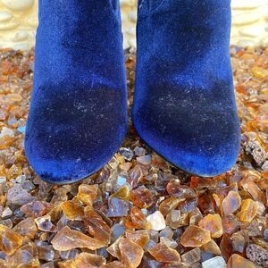 Steven Madden Blue Edit Zip Up Velvet Block Heel Ankle Boots.