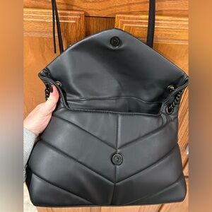 Stylish Steve Madden shoulder bag with chevron pattern. Sleek black design with chain strap. Excellent condition