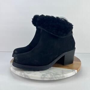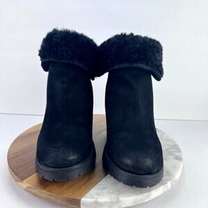 Steven Madden Havek Shearling Bootie Black Suede Fur Zip Women's Ankle Boots 7.5