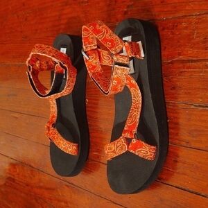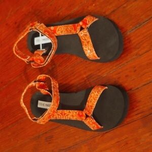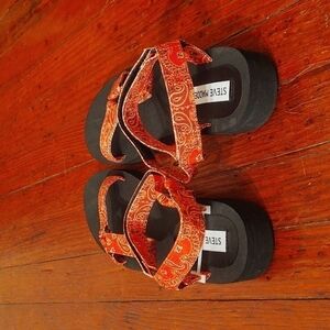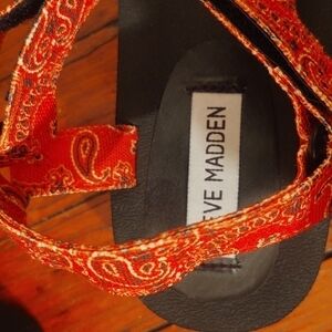 Steven Madden Henley Red Bandana Print Paisley Print Sandals Sz 8