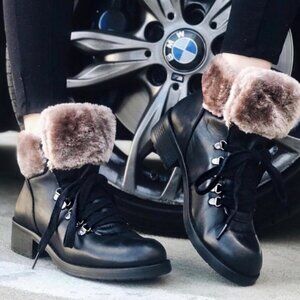 Steven Madden Leather Paloma faux fur ankle boot booties run 7 like new