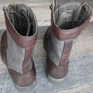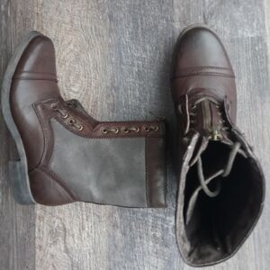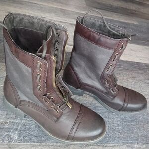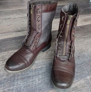 Steven Madden M-archer Combat leather Boots, lace-up, front zipper.