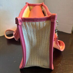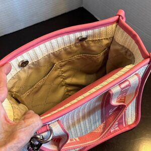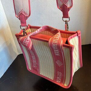 Steven Madden Pink & White Woven Crossbody Bag With Adj Strap & Interior Pockets
