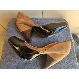 Steven Madden Women's Sumee Pump Size 7.5 Black Brown Cognac Patent Leather