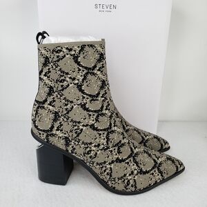 Steven N.Y. Nikia Multi Color Snake Print Fabric Notch Out Heel Boot Sz 8 & 8.5