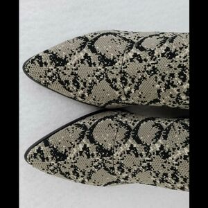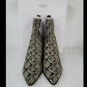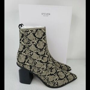 Steven N.Y. Nikia Multi Color Snake Print Fabric Notched Out Heel Boot Sz 8.